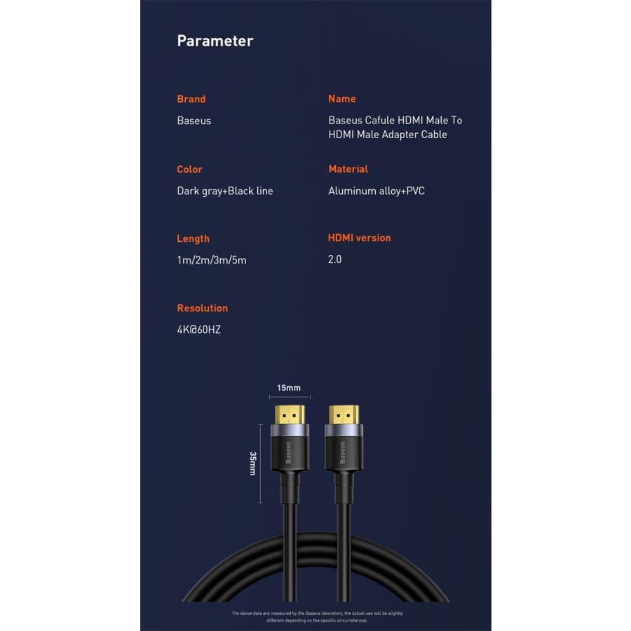 Baseus Enjoyment Series 4KHD Male To 4KHD Male Adapter Cable is designed to provide you with the best possible viewing and listening experience. It supports HDMI 2.0, which means it can transmit 4K@60HZ video and audio signals with no lag or distortion. It also has nylon-braided and gold-plated connectors, which ensure a stable and secure connection. Whether you want to watch movies, play games, or stream online content, this cable will make it easy and enjoyable. The Baseus Enjoyment Series is compatible with most monitors, TVs, and projectors that have HDMI ports. It is also easy to use and install, just plug and play. With this cable, you can enjoy the ultimate entertainment experience at home or in the office.